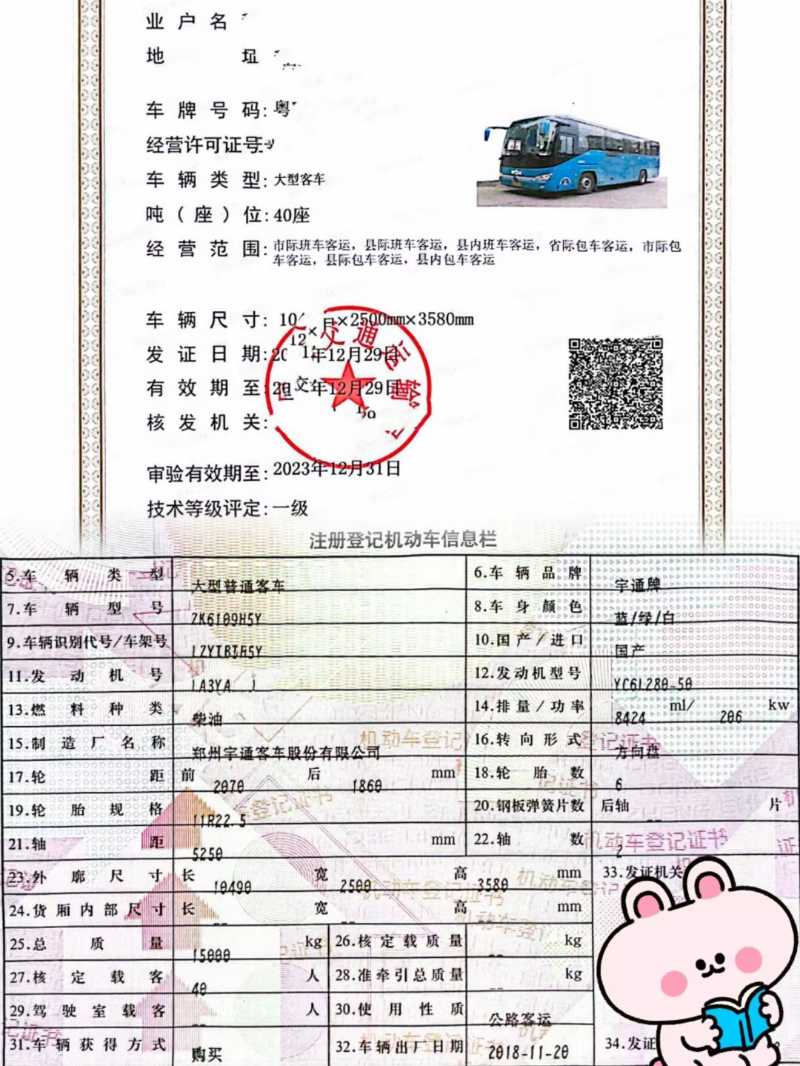| 客车品牌 | 宇通客车 | 上牌时间 | 2018-12-12 |