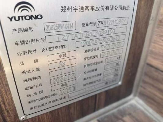 | 客车品牌 | 宇通客车 | 上牌时间 | 2021-01-20 |