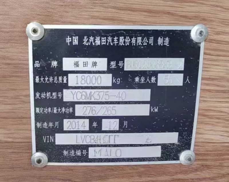 | 客车品牌 | 福田风景 | 上牌时间 | 2015-02-10 |