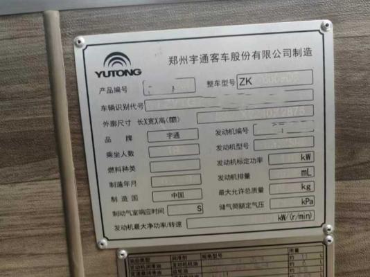 | 客车品牌 | 宇通客车 | 上牌时间 | 2021-04-13 |