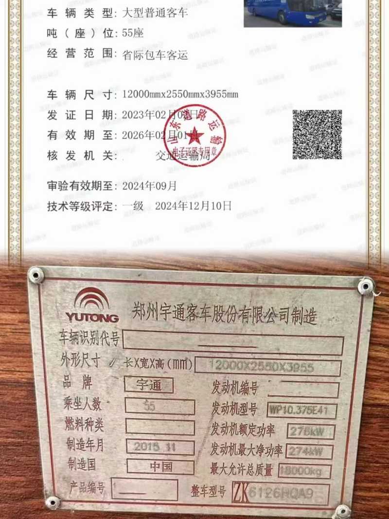 | 客车品牌 | 宇通客车 | 上牌时间 | 2015-12-25 |