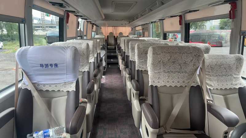 刚6个月准新2+1 型34座宇通保姆车,2024年1月上牌宇通 6117 气囊车气囊车有中门和安全门,有公告,司机独立驾驶室,新款小杆挂档杆,潍柴 320 国六 发动机,2+1 商务座椅,每个座椅都带 USB 充电插口, 四轮碟刹,定速巡航,上移行李舱,锅炉暖气,落地差不多60万!旅游客运市级省级包车,可提营运!同款两台.