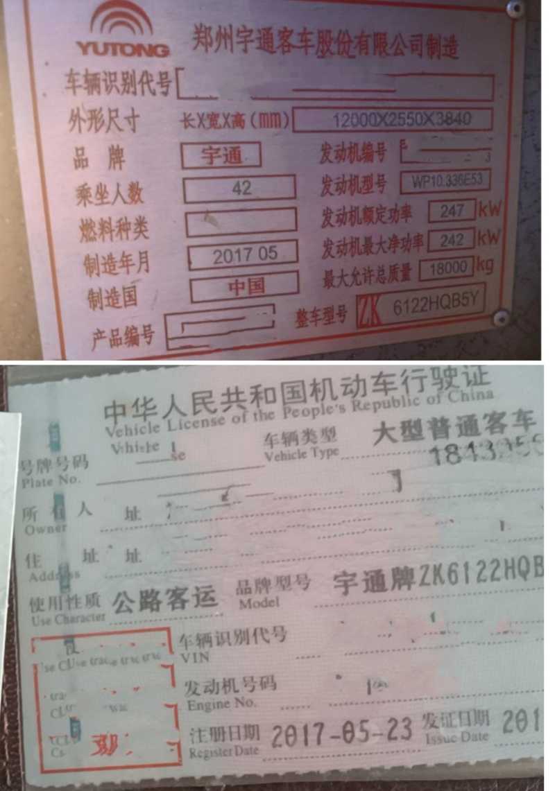 | 客车品牌 | 宇通客车 | 上牌时间 | 2017-05-23 |