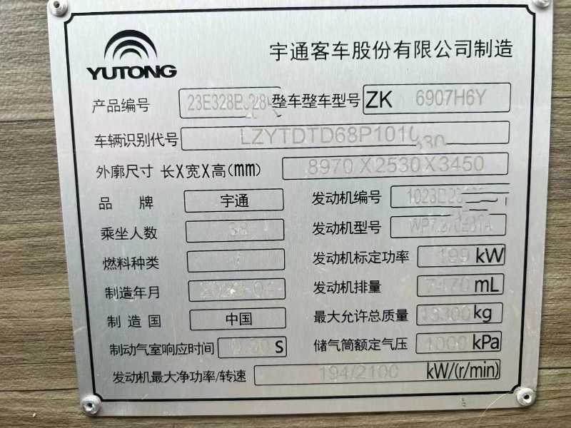 2023年5月上牌ZK6907H6Y旅游客运高一级营运公告,可提双档,气囊车,四轮碟刹,潍柴270,动车窗帘,座椅USB。暖气,木纹地板。