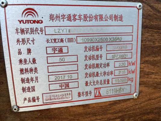 | 客车品牌 | 宇通客车 | 上牌时间 | 2017-11-16 |