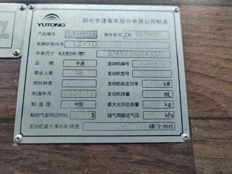 | 客车品牌 | 宇通客车 | 上牌时间 | 2020-12-17 |