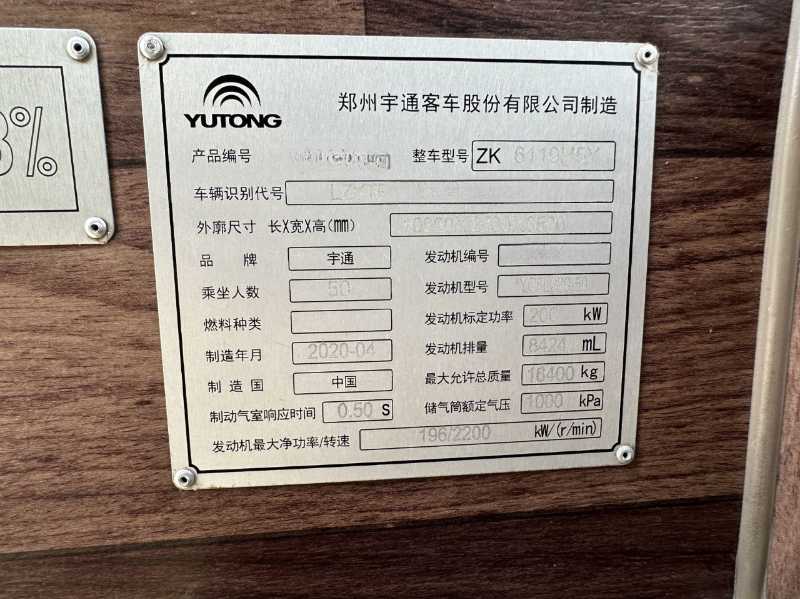 | 客车品牌 | 宇通客车 | 上牌时间 | 2020-04-21 |