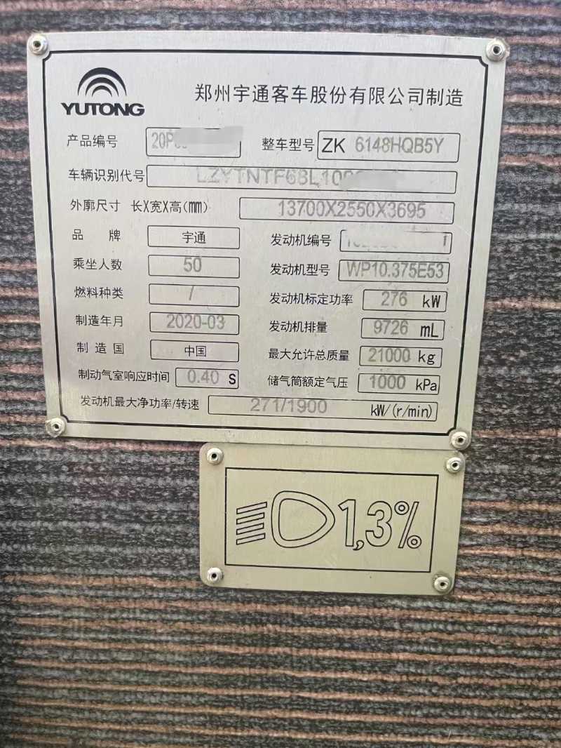 | 客车品牌 | 宇通客车 | 上牌时间 | 2020-07-13 |
