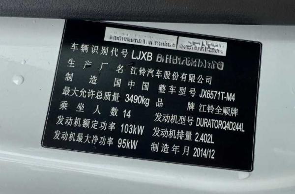 | 客车品牌 | 江铃全顺 | 上牌时间 | 2017-01-10 |