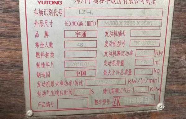 | 客车品牌 | 宇通客车 | 上牌时间 | 2018-02-13 |