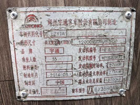 | 客车品牌 | 宇通客车 | 上牌时间 | 2014-09-24 |