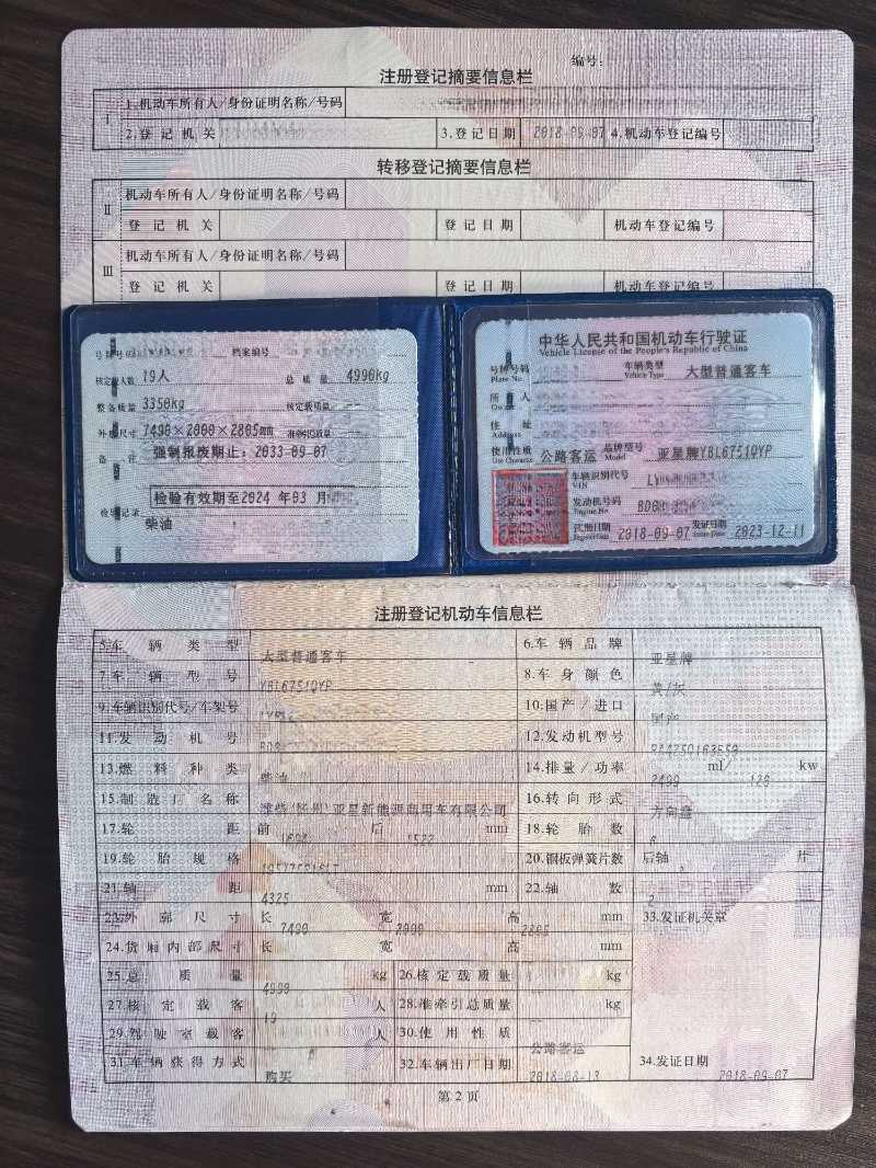 19座亚星6751,2018年 9 月 上牌,大型普通客车,RA425Q163E50发动机,国五排放,公路客运,同款多台,随时提档过户。