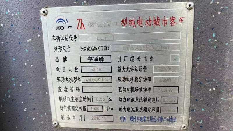 | 客车品牌 | 宇通客车 | 上牌时间 | 2018-12-13 |