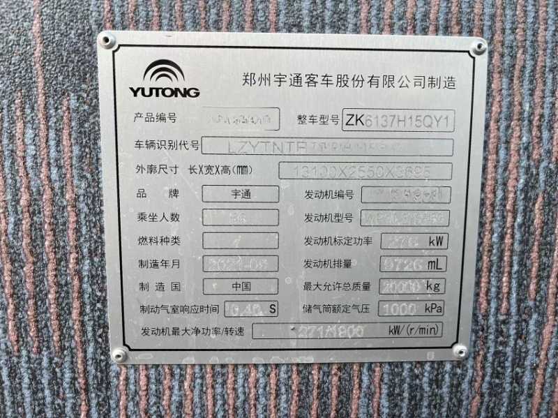 | 客车品牌 | 宇通客车 | 上牌时间 | 2021-06-24 |