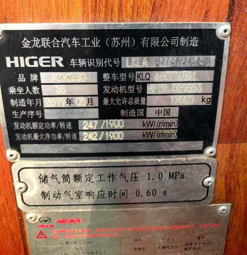 | 客车品牌 | 海格客车 | 上牌时间 | 2019-10-22 |