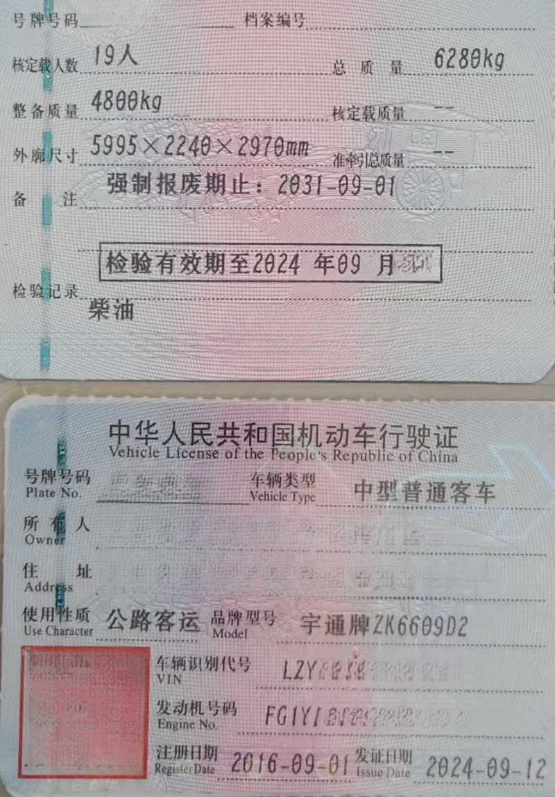 | 客车品牌 | 宇通客车 | 上牌时间 | 2016-09-29 |