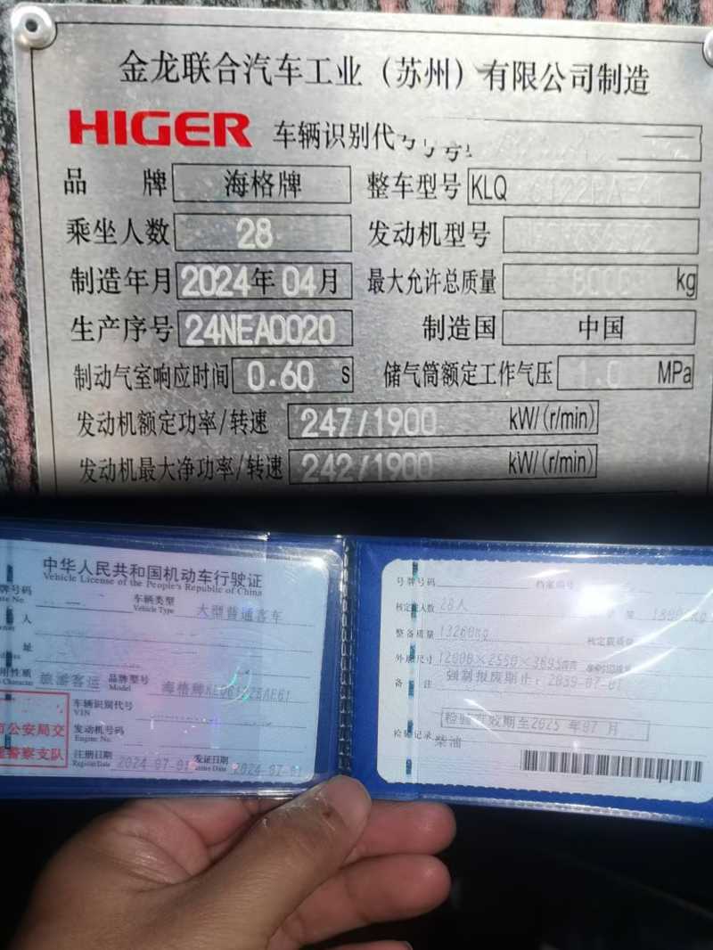 | 客车品牌 | 海格客车 | 上牌时间 | 2024-07-23 |