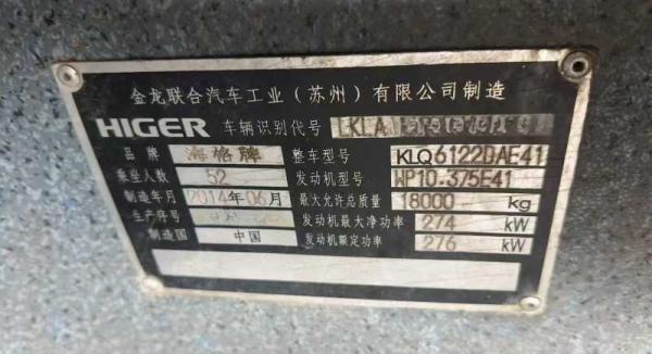 | 客车品牌 | 海格客车 | 上牌时间 | 2014-07-21 |