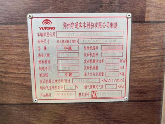 | 客车品牌 | 宇通客车 | 上牌时间 | 2018-12-13 |