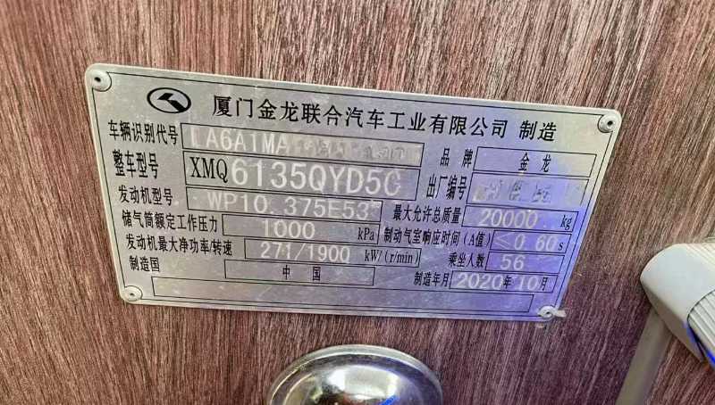 | 客车品牌 | 金龙客车 | 上牌时间 | 2020-11-24 |