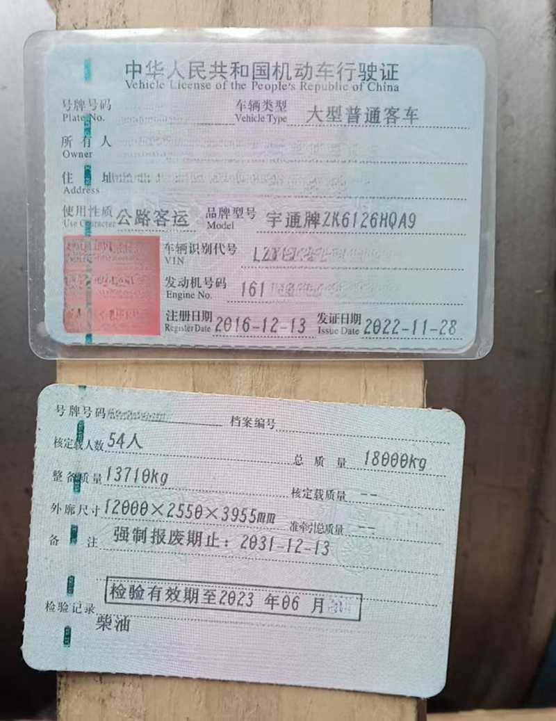 | 客车品牌 | 宇通客车 | 上牌时间 | 2016-12-21 |
