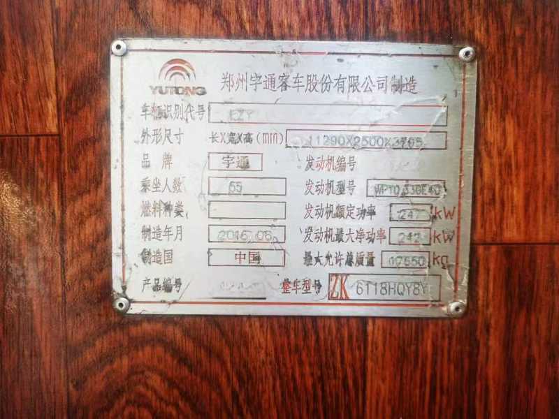 | 客车品牌 | 宇通客车 | 上牌时间 | 2016-07-20 |