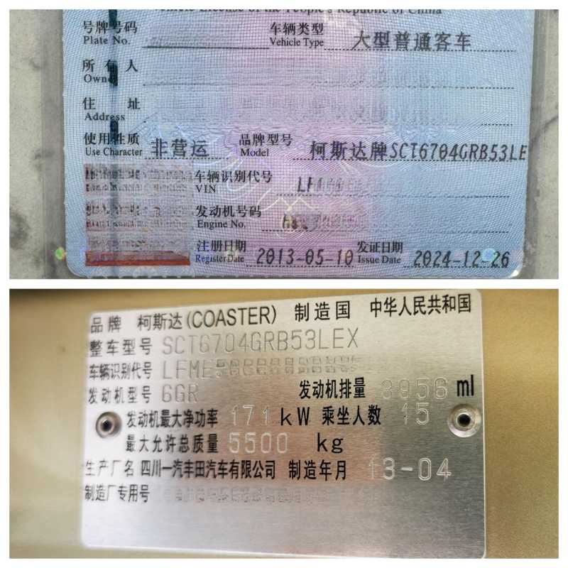 | 客车品牌 | 柯斯达客车 | 上牌时间 | 2013-05-21 |