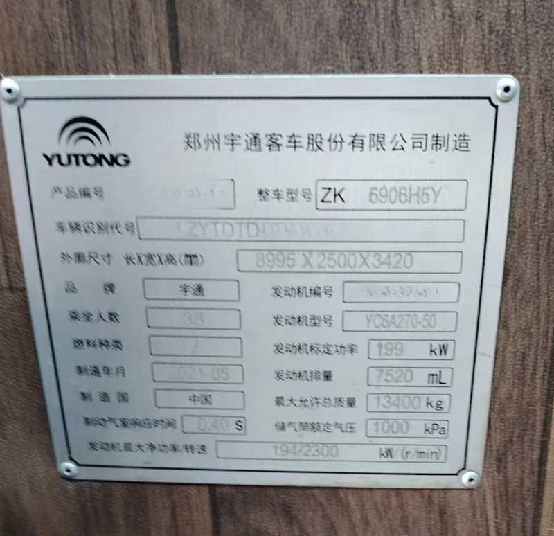 | 客车品牌 | 宇通客车 | 上牌时间 | 2021-06-25 |