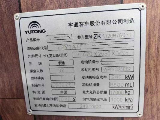 | 客车品牌 | 宇通客车 | 上牌时间 | 2022-06-15 |