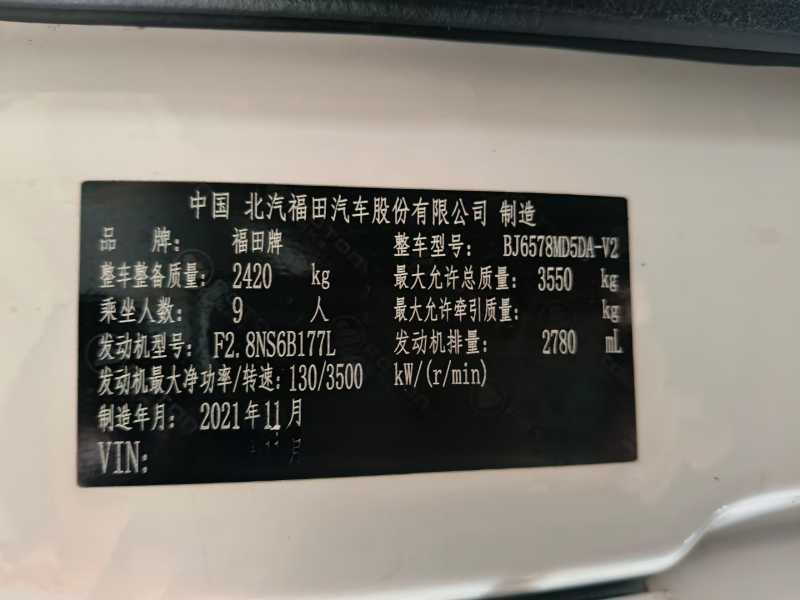 | 客车品牌 | 福田图雅诺 | 上牌时间 | 2021-12-15 |