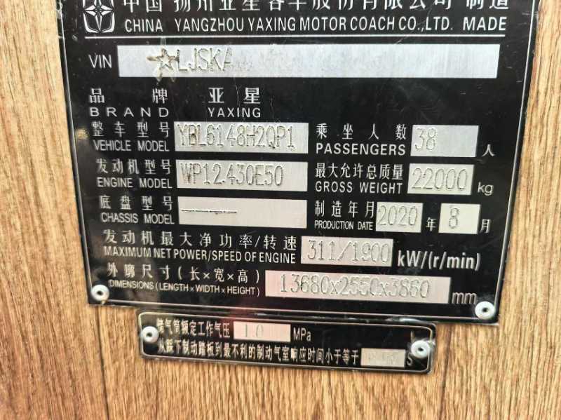 | 客车品牌 | 亚星客车 | 上牌时间 | 2020-09-10 |