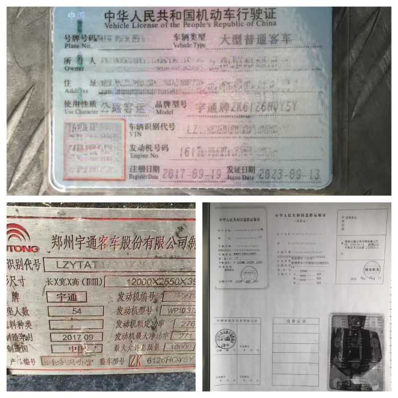 | 客车品牌 | 宇通客车 | 上牌时间 | 2017-09-13 |