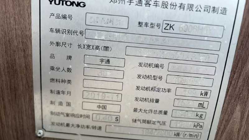 | 客车品牌 | 宇通客车 | 上牌时间 | 2019-11-13 |