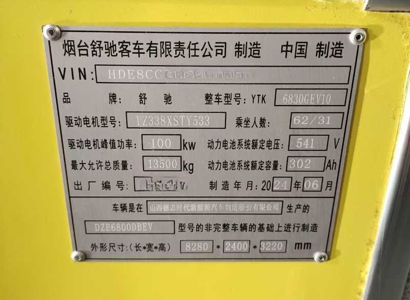 | 客车品牌 | 舒驰客车 | 上牌时间 | 2025-06-04 |