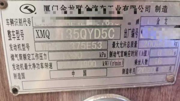 | 客车品牌 | 金龙客车 | 上牌时间 | 2020-11-11 |