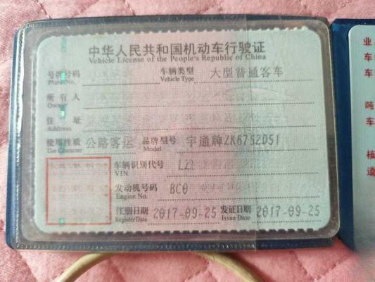 | 客车品牌 | 宇通客车 | 上牌时间 | 2017-09-19 |