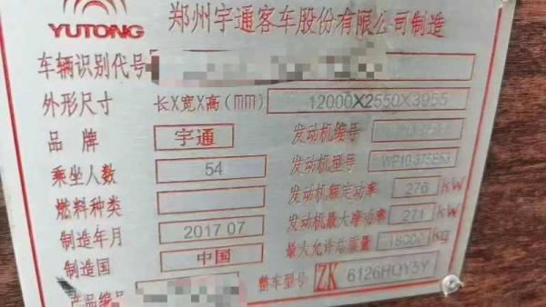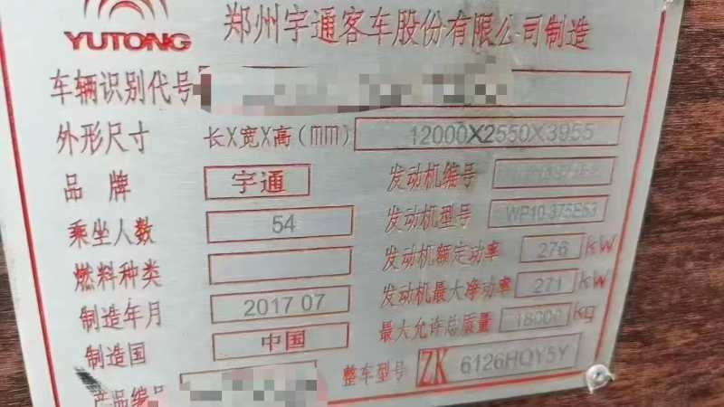 | 客车品牌 | 宇通客车 | 上牌时间 | 2017-08-22 |