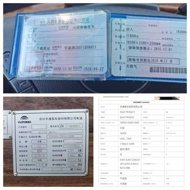 2020年12月上牌国六有公告48座天然气LNG宇通6119营运车