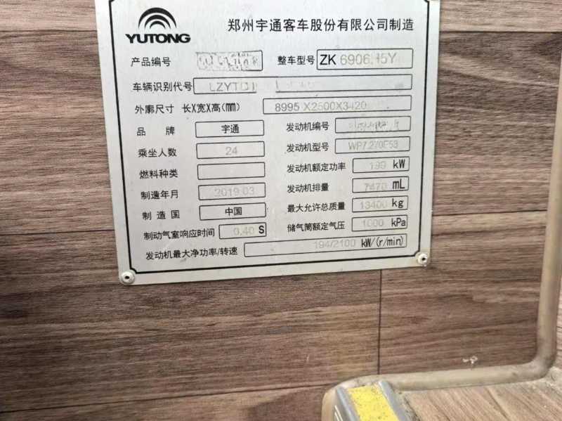 | 客车品牌 | 宇通客车 | 上牌时间 | 2019-04-23 |