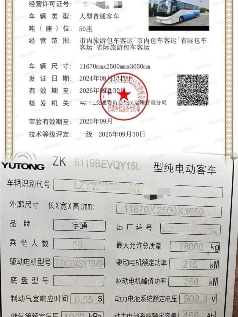多台北方配50座宇通229度营运版电车 2021年9月上牌宇通6119,宁德时代电池,229度电池加热,带原厂锅炉,暖气,木纹地板,皮质座椅,行李架。公路客运性质,可提营运,公里数不多,喜欢的来。 本公司接受客车置换(国三国四国五,非营运,旅游客运,公路客运,公交客运都可以)。我们有着丰富的外迁内地城市经验。也可做正规出口手续。我们在广东省珠三角区域(深圳、广州、珠海、佛山、东莞、惠州)从事二手车数十年,全部是薄利多销的价格出售,不管是单台还是批量•均享受最诚信的合作态度。也可以根据您需要的指定车型来优选匹配,柴油.油电混合、新能源纯电动均可在珠三角区域看到现车,各种品牌都有,油车,新能源电车,油电混合,天然气客车等,可安排师傅代驾送车,或者物流配送发往全国。我们的宗旨:不但销售的车型丰富多元化,服务更是全方位:可视频看车定车,可代驾送车。另外本公司常年收购2座-55座客车,中巴、大巴都可以操作。 公司地址:1、深圳市南山区西丽街道曙光社区云家供应链有限公司宿舍101车友汇鑫汽车贸易有限公司 2、深圳罗湖区宝岗路1号淘车吧
