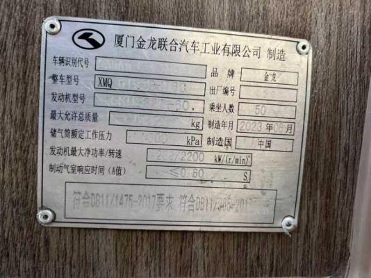 | 客车品牌 | 金龙客车 | 上牌时间 | 2023-06-22 |