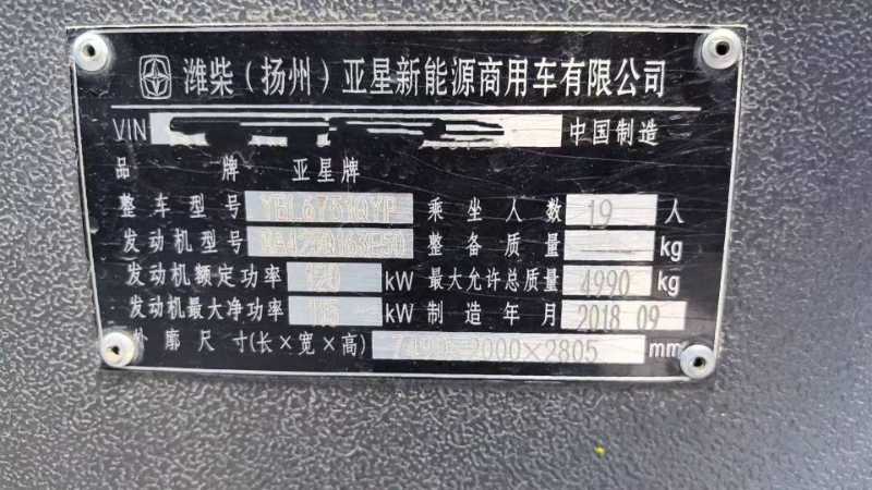 | 客车品牌 | 亚星客车 | 上牌时间 | 2018-09-15 |