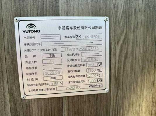 | 客车品牌 | 宇通客车 | 上牌时间 | 2023-06-20 |