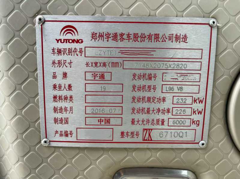 | 客车品牌 | 宇通客车 | 上牌时间 | 2017-01-10 |