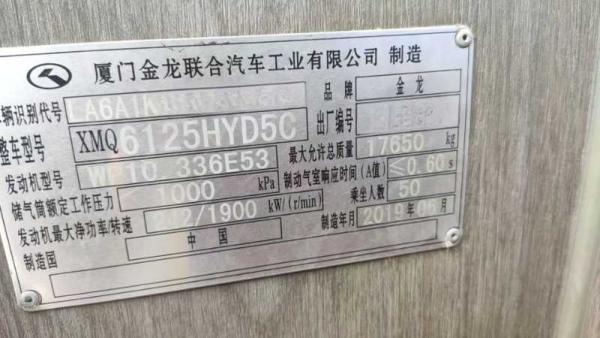| 客车品牌 | 金龙客车 | 上牌时间 | 2019-06-19 |