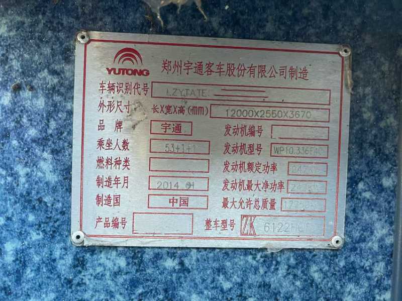 | 客车品牌 | 宇通客车 | 上牌时间 | 2014-01-14 |