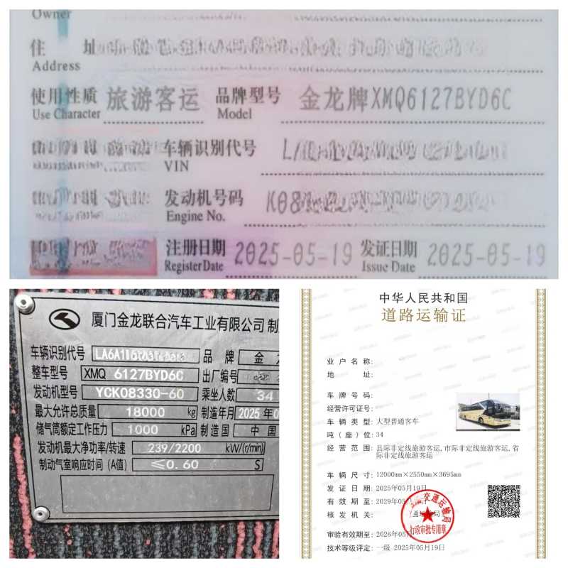 | 客车品牌 | 金龙客车 | 上牌时间 | 2025-05-19 |