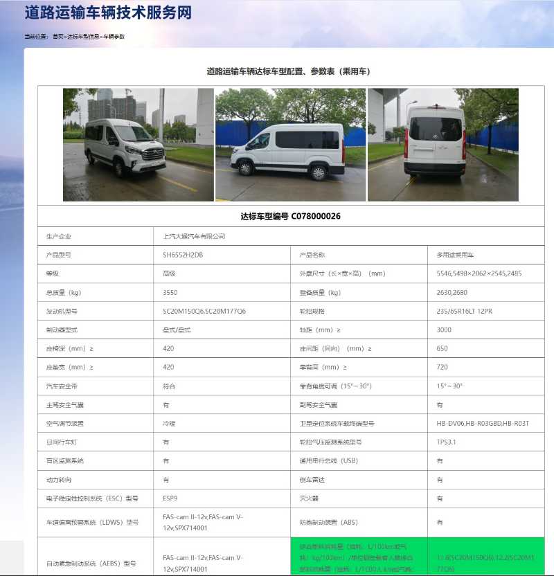 2021年9月 国六非营运有公告9座大通小型车