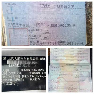 国六非营运有公告9座大通小型车,2021年9月上牌大通6552,C照可开,2.0自动六速长轴,高级公告,车况精品,半价出售。 本公司接受客车置换(国三国四国五,非营运,旅游客运,公路客运,公交客运都可以)。我们有着丰富的外迁内地城市经验。也可做正规出口手续。我们在广东省珠三角区域(深圳、广州、珠海、佛山、东莞、惠州)从事二手车数十年,全部是薄利多销的价格出售,不管是单台还是批量•均享受最诚信的合作态度。也可以根据您需要的指定车型来优选匹配,柴油.油电混合、新能源纯电动均可在珠三角区域看到现车,各种品牌都有,油车,新能源电车,油电混合,天然气客车等,可安排师傅代驾送车,或者物流配送发往全国。我们的宗旨:不但销售的车型丰富多元化,服务更是全方位:可视频看车定车,可代驾送车。另外本公司常年收购2座-55座客车,中巴、大巴都可以操作。 公司地址:1、深圳市南山区西丽街道曙光社区云家供应链有限公司宿舍101车友汇鑫汽车贸易有限公司 2、深圳罗湖区宝岗路1号淘车吧