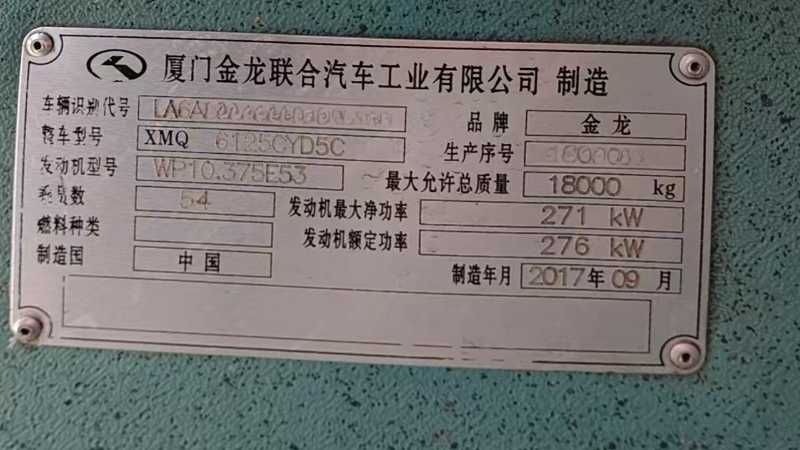 | 客车品牌 | 金龙客车 | 上牌时间 | 2017-09-21 |